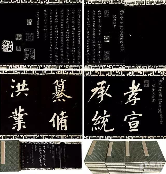 提要:拍品墨色烏黑發亮,字口鋒利,筆劃清朗有神,筆墨清潤,為內府拓本。全套花錦面三十二冊,品相極其精美。