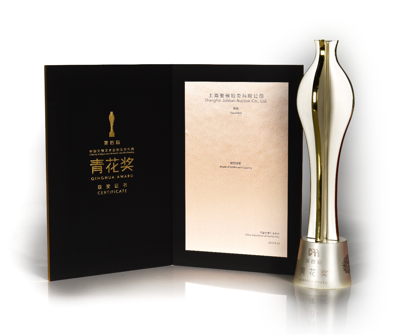 2019年9月24日,第四屆中國文物藝術品拍賣排行榜“青花獎”頒獎晚會在上海外高橋喜來登大酒店舉行。在上海馳翰拍賣有限公司成立十周年之際,我們此次榮獲了2018年度青花獎之“結算率獎”!感謝領導的肯定及鼓勵,我們會一如既往堅持嚴把拍品質量,讓客戶滿意是我們的宗旨,結算快速更是我們的信譽所在。